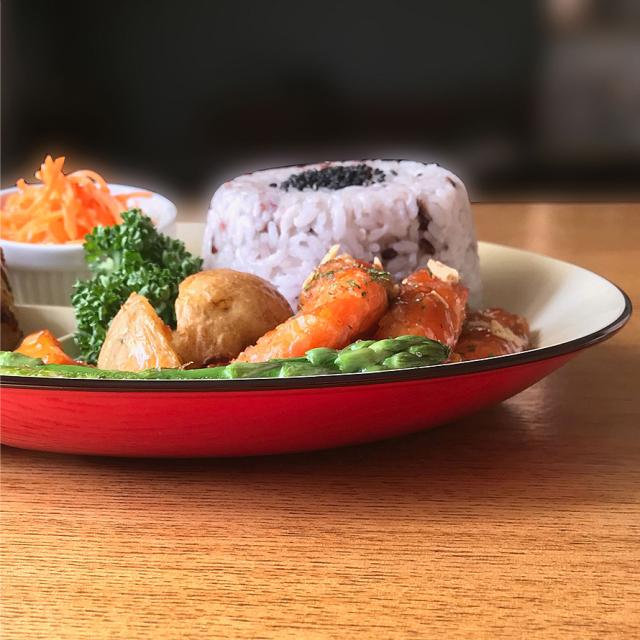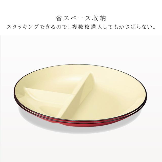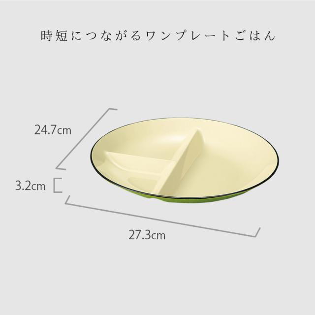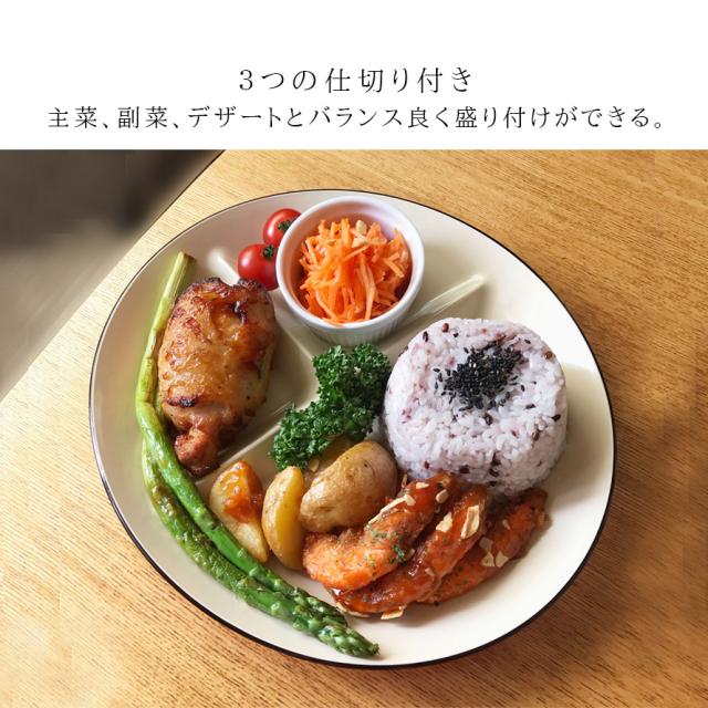 3つの仕切り付きなので、主菜、副菜、デザートとバランス良く盛り付けが可能。ワンプレートで済むので、時短にもつながります。