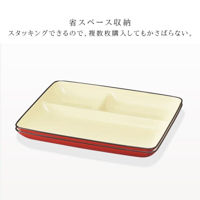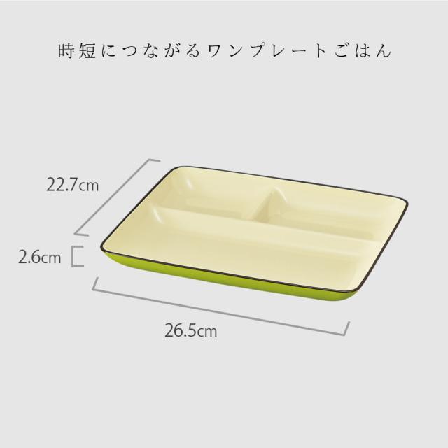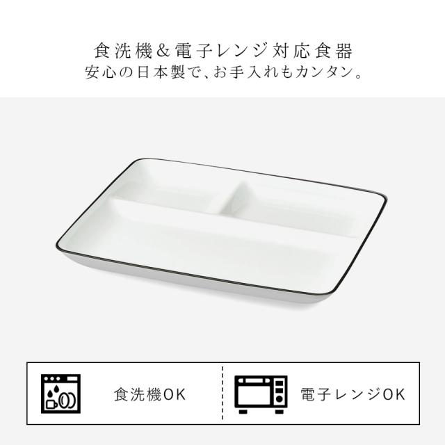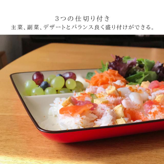 3つの仕切り付きなので、主菜、副菜、デザートとバランス良く盛り付けが可能。ワンプレートで済むので、時短にもつながります。