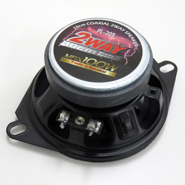 トレードインスピーカー 車 10cm/100mm コアキシャル2WAYスピーカー 最大100W 定格20W ブラック DC12V車用/ブレイス PL-205