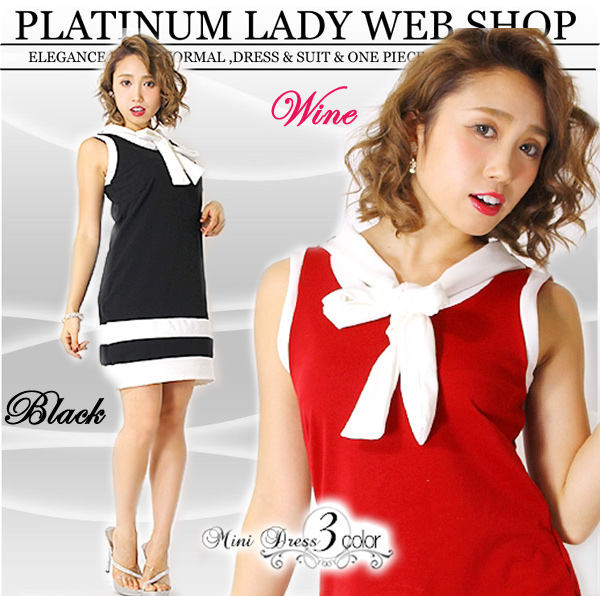 送料無料「沖縄、離島の方は除外です」配色タイカーラーAラインワンピース[ キャバドレス・小悪魔アゲハ]