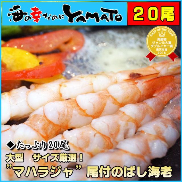 大型7Lサイズ厳選!”マハラジャ”尾付のばし海老 たっぷり20尾入り/えび/エビ