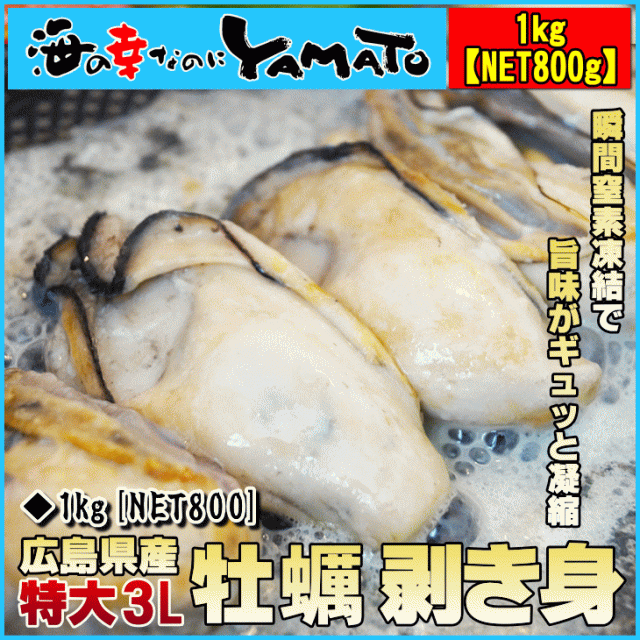 広島県産 牡蠣むき身 1kg(NET800g) 際立つ超大粒3Lサイズ 冷粒 カキ かき 冷凍食品 惣菜 母の日 父の日 kst23_m kst23_g