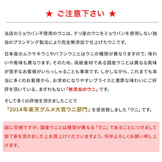無添加・ミョウバン不使用で更に美味しくなりました!ウニ本来の味わいをお届けします!