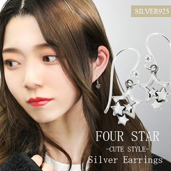 フォー スター シルバー フックピアス (2P 両耳用)シルバー925 レディース ピアス 両耳