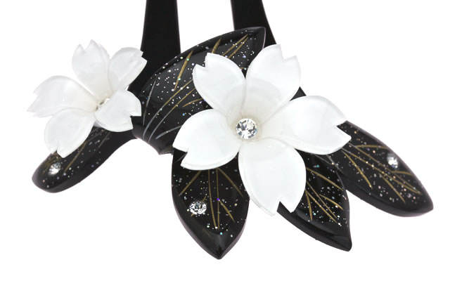かんざし バチ型 和装 簪 髪飾り 黒 ブラック 葉 花 ラメ ラインストーン フォーマル 髪飾り かんざし ヘアアクセサリー 成人式 卒業式 結婚式 パーティー 日本製