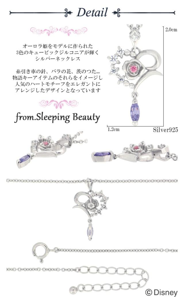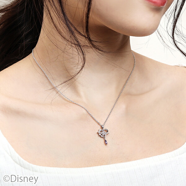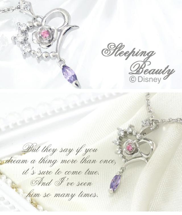 シルバーネックレス/ペンダント/レディース/オーロラ姫/ディズニープリンセス/Disney/眠れる森の美女/プリンセス/ハート/フェアリーテール/童話/パープルピンクジルコニア