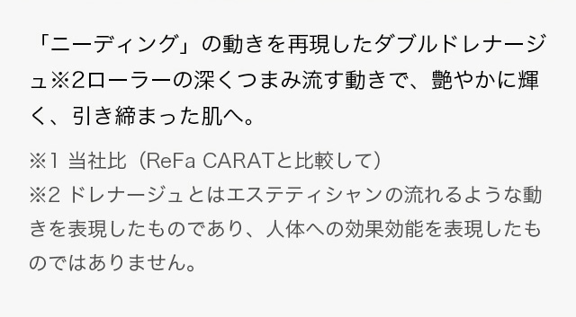 深く、つまみ流すニーディングの動きが、女性の肌を美しく引き締める。ReFa CARAT RAY