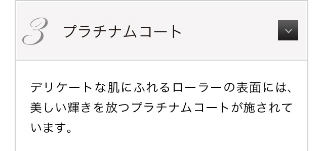 デリケートな素肌に触れるものだからローラーの表面にはプラチナムコートを採用。