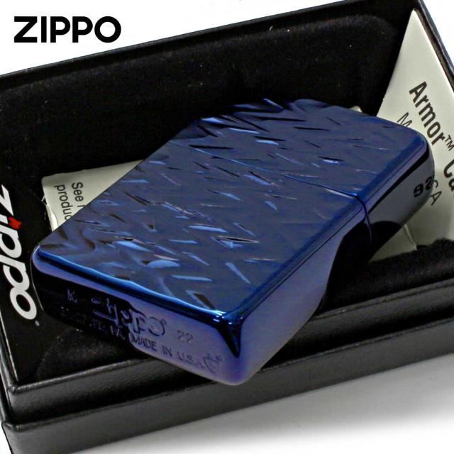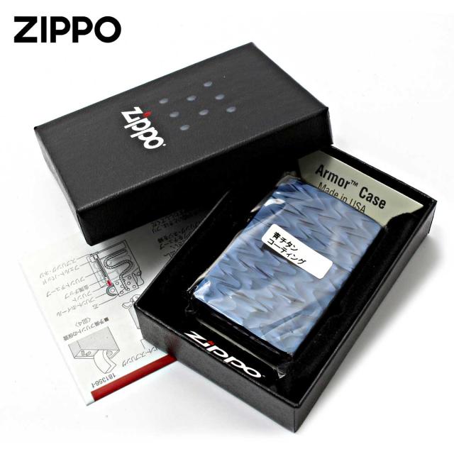 Zippo ジッポライター アーマー 彫刻 RIP 模様 両面加工 チタニュームコーティング ブルー 62TIBL-RIP メール便専用商品