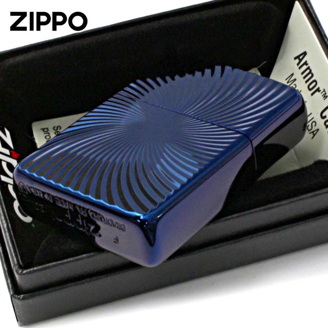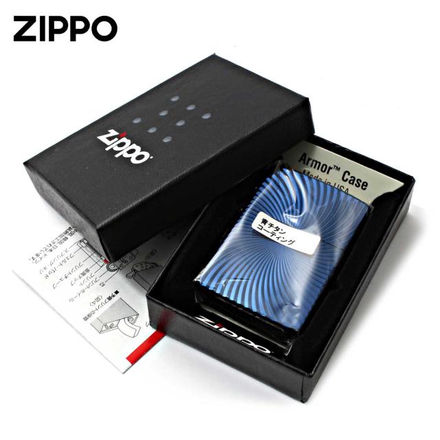 Zippo ジッポライター アーマー 彫刻 WAVE ウェーブ 模様 両面加工 チタニュームコーティング ブルー 62TIBL-WAVE メール便専用商品