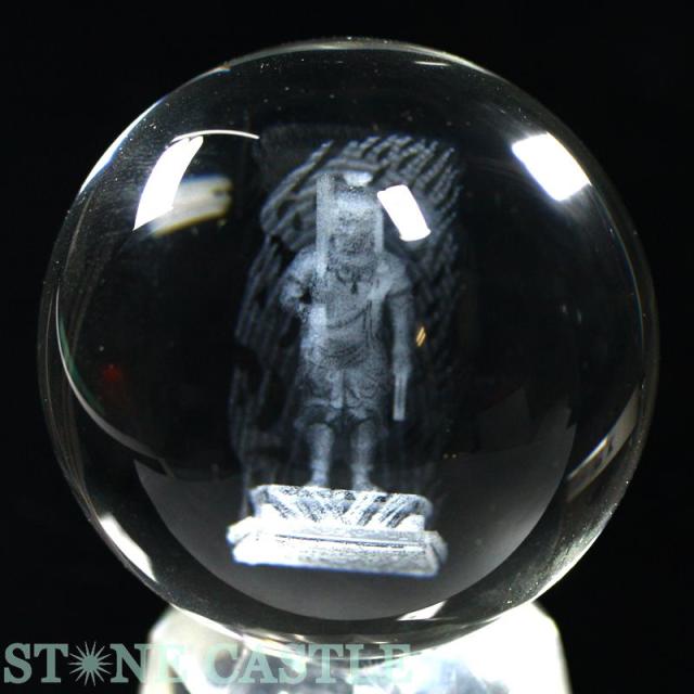 【天然石 彫刻置物】丸玉 人工水晶 約50mm (レーザー彫刻) 不動明王 パワーストーン