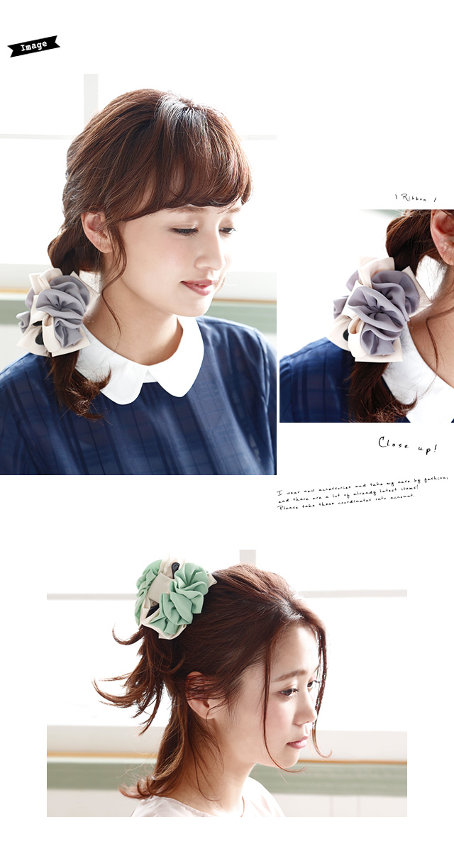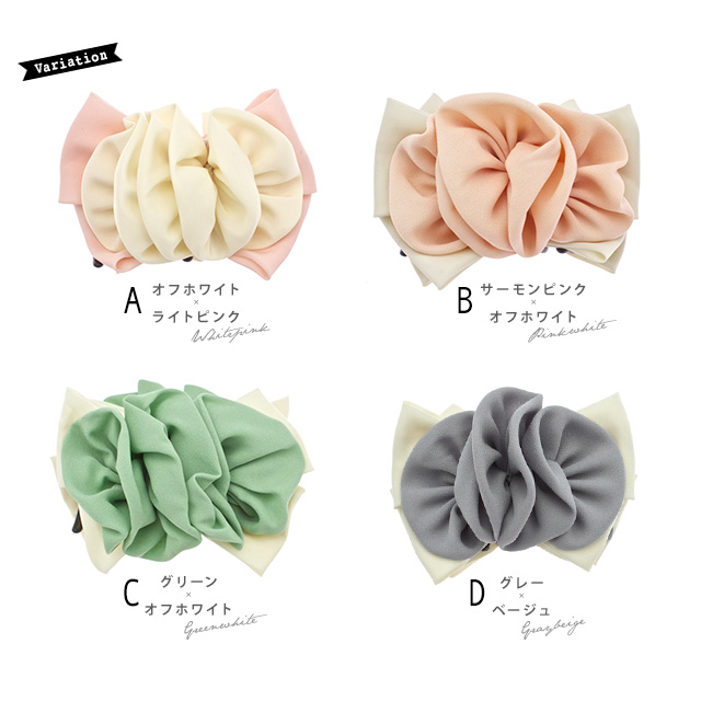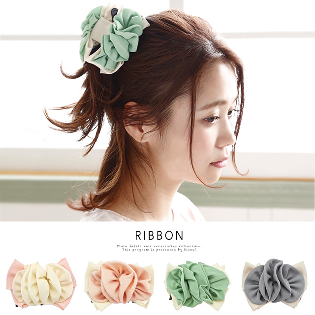 【シフォン素材のリボンバンスクリップ】クリップ/りぼん/無地/シンプル/オフィス/ヘアアレンジ/髪留め/髪飾り/ヘアアクセサリー