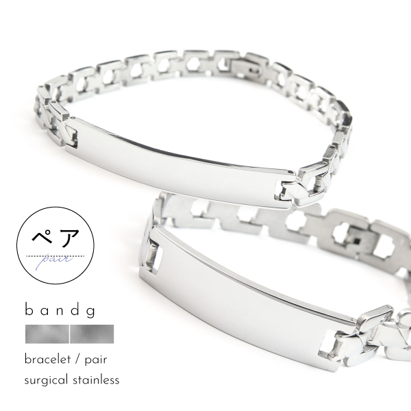 ブレスレット つけっぱなし ステンレス 金属アレルギー プレート 板 ベルト ワイド スリム ペアブレスレット シルバー コマ 刻印 名入れ メンズ レディース
