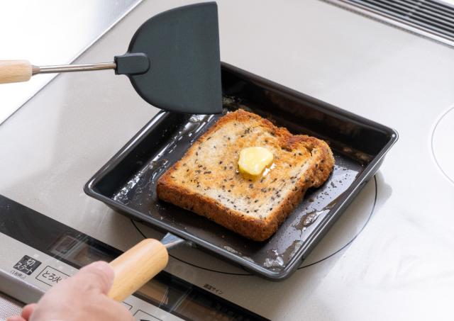 食パン1枚がぴったり収まる正方形タイプなので、トーストを焼くのもおすすめです。四角い形のスペースを有効活用して、餃子や炒め物など幅広い調理が可能です。一度に複数の食材を焼くこともできるので、忙しい朝も効率よく時短で調理できます。