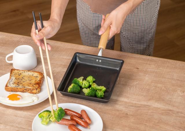 鉄フライパンと同じように使うことができるので、魚の切り身やお肉、少量のウィンナーを焼いたりと朝食やお弁当のおかず作りなどの少量調理にも重宝します。少量のおかずのために大きいフライパンを使うのは面倒ですが、卵焼き器ならさっと焼けて片付けも楽です。