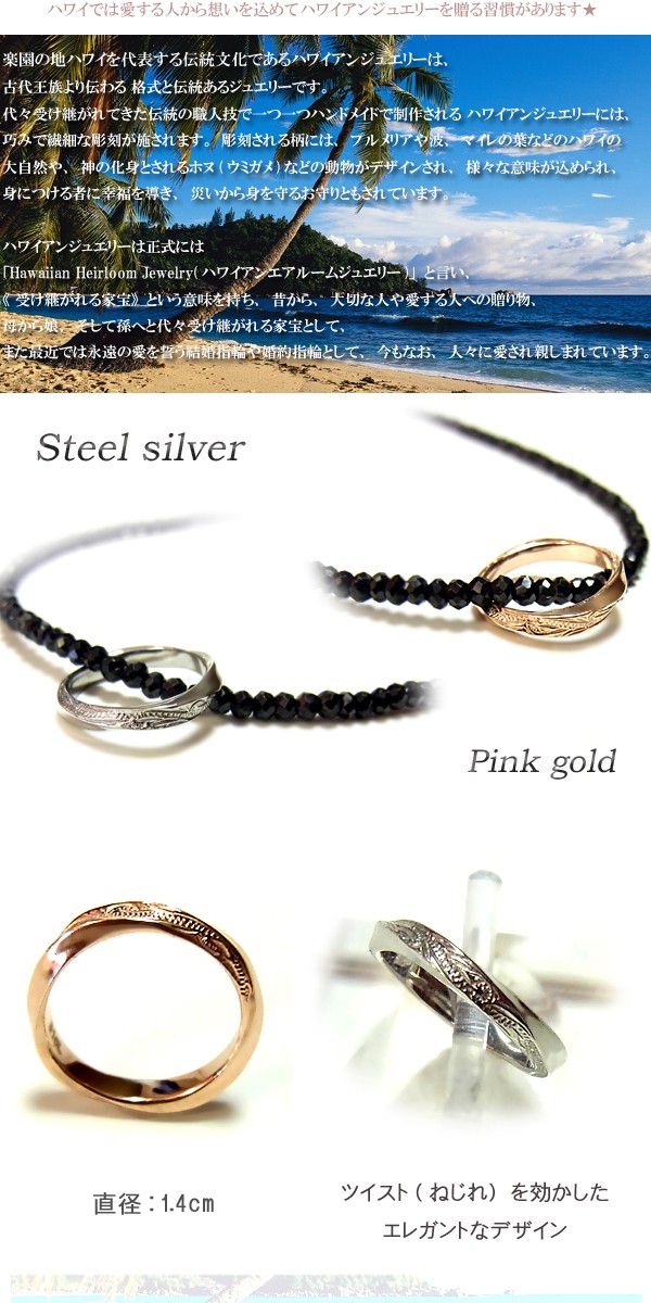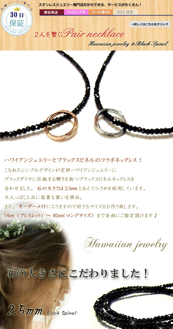 送料無料 ペアハワイアンジュエリー ペアリングネックレス ペアペンダント ピンクゴールド ブラックスピネル BOX付き ラッピング対応 アレルギー対応