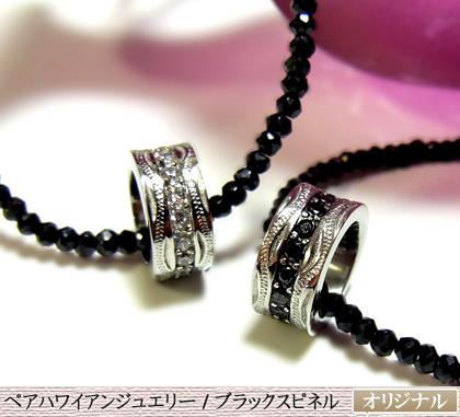 送料無料 ペアハワイアンジュエリー ペアネックレス ペアペンダント ブラック ジルコニア ブラックスピネル BOX付き ラッピング対応 アレルギー対応