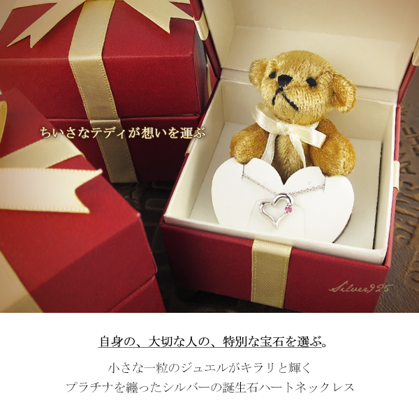 (シルバーアクセサリー 誕生石 一粒 華奢 細身 プラチナ プラチナコーティング ガーネット アメジスト アクアマリン クリスタル クォーツ クリスタルクォーツ 水晶 エメラルド ブルームーンストーン ムーンストーン ルビー ペリドット サファイア ブルーサファイア トルマリン ピンクトルマリン ブルートパーズ トパーズ タンザナイト ホワイト 白 シルバー 銀 レッド 赤 ピンク ローズ ワインレッド 赤紫 紫 紺 ネイビー 青 ブルー アイスブルー すみれ色 水色 アクアブルー グリーン 緑 黄緑 イエロー 黄色 きらきら きれい 上品 清楚 大人かわいい ハート オープンハート ミニハート ハートネックレス 箱付き くま付き くま くまのぬいぐるみ 熊 熊のぬいぐるみ テディベア テディベアストラップ テディベア付き ぬいぐるみ付き)