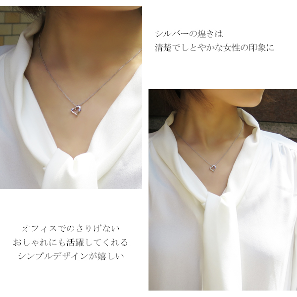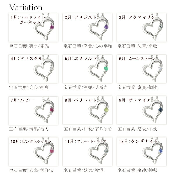 プラチナコーティング シルバー925 オープンハート 誕生石ネックレス