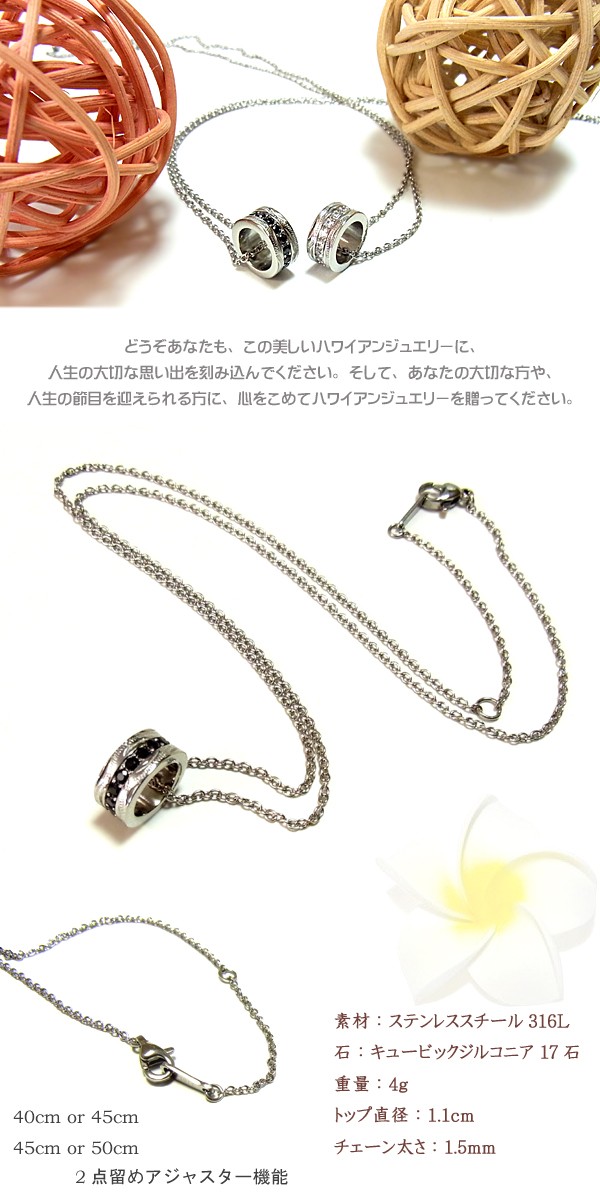 送料無料 ハワイアンジュエリー ネックレス ペンダント メンズ レディース ブラック 石 キュービックジルコニア ステンレス ラッピング対応 アレルギー対応