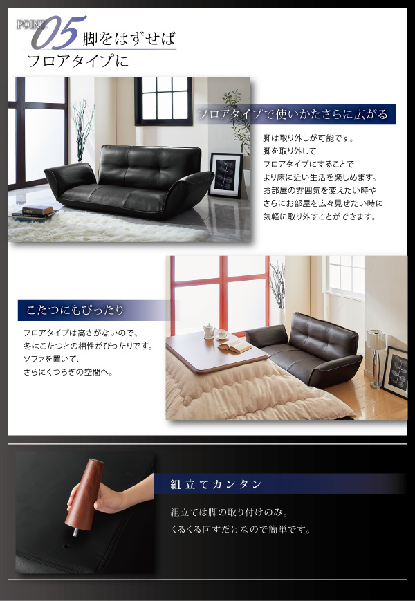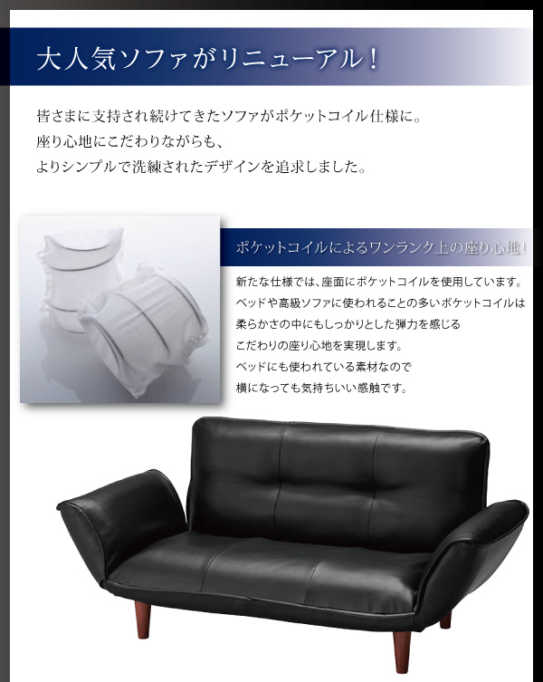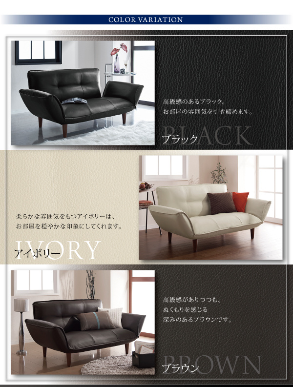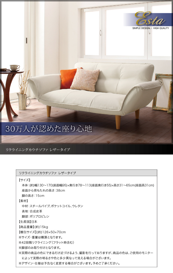 リクライニングカウチソファ レザータイプ 【Esta】エスタ レザータイプ 2人掛け 2Pサイズ 【座面色】ブラック 【脚色】ブラウン