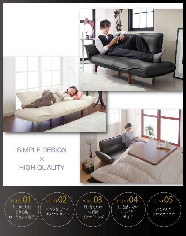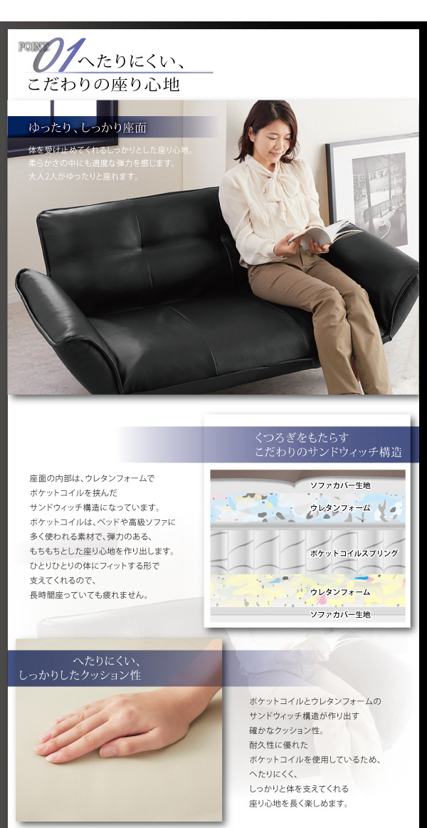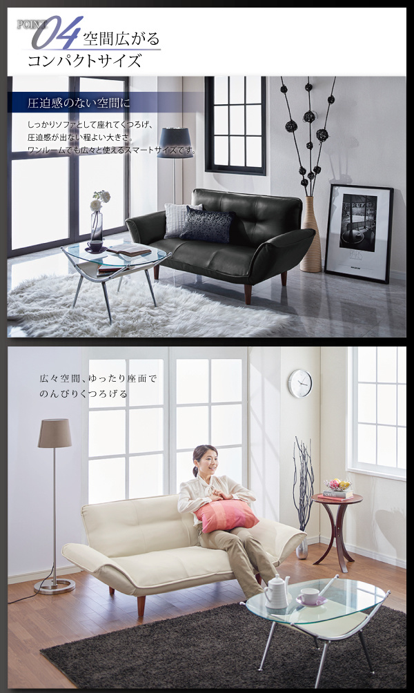 リクライニングソファ/レザーソファ/カウチソファ/2人掛け/二人掛け/2人用