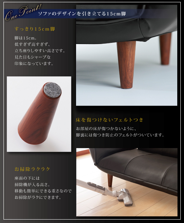 2P:座面から背もたれの高さ:38cm脚の長さ:15cm