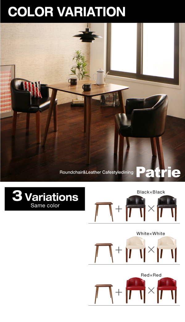 ラウンドチェア×レザー カフェスタイルダイニング【Patrie】パトリ 3点セット(テーブル+チェア×2) ホワイト×ホワイト