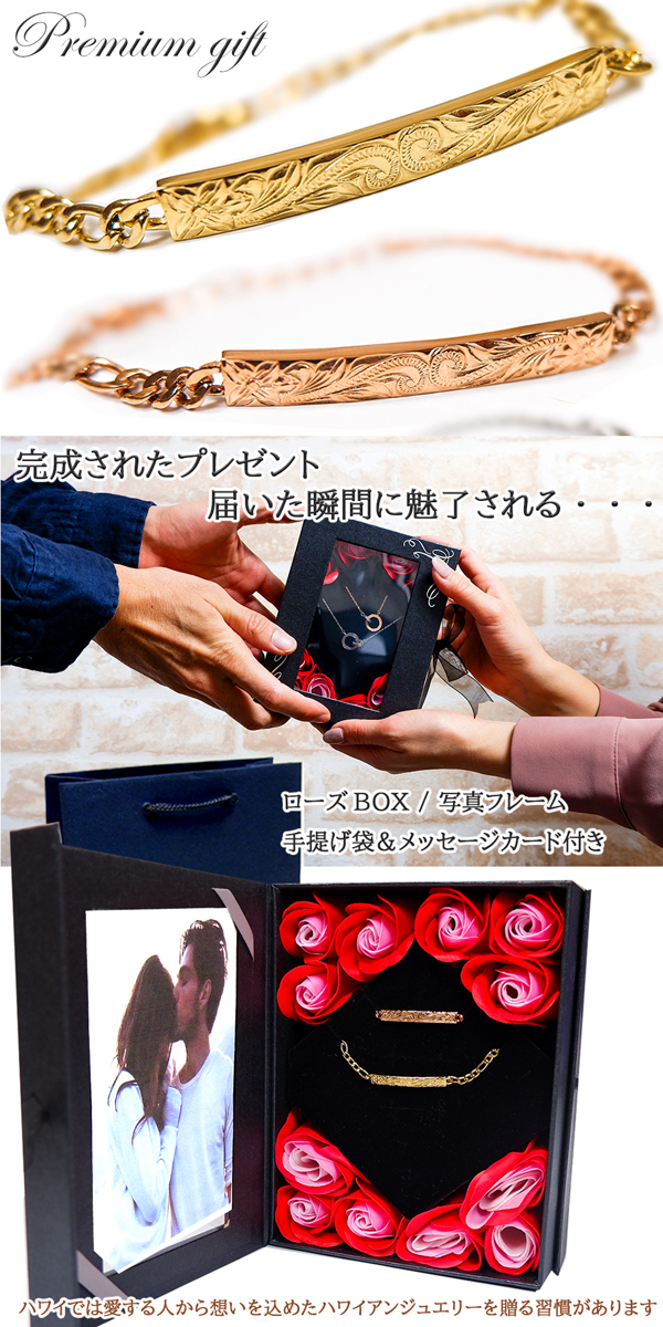 送料無料 ペアハワイアンジュエリー ペアブレスレット ペアバングル ゴールド ピンクゴールド ステンレス BOX付き ラッピング対応 アレルギー対応