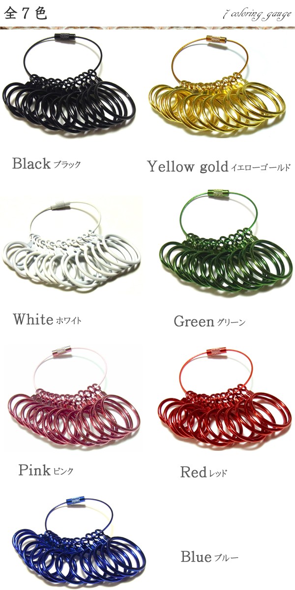 - グリーンを二点購入しました、画像より発色が良くて綺麗ですね。発送も早く、エアクッションに入って届きました。ワイヤーは細めですが、リングゲージとしてというよりアクセサリーとして購入したので十分です。他のカラーが完売していたので、入荷されたらレッドやゴールドも欲しいところ。