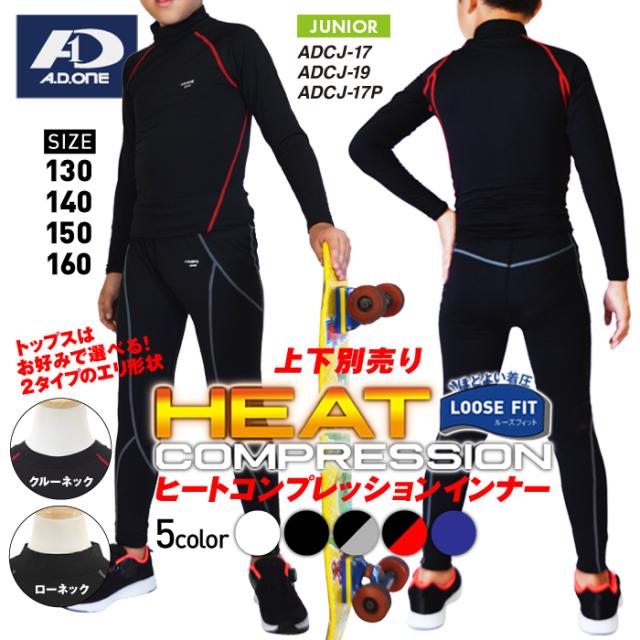 ジュニアヒートコンプレッションウェア/子供用スポーツインナー/シャツ パンツ スパッツ/ゴルフ 野球 サッカー テニスなど/