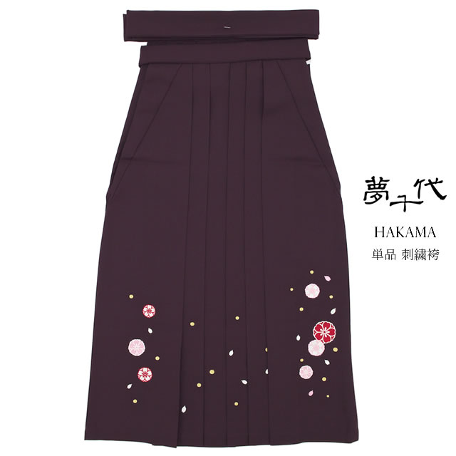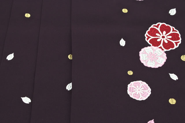 袴 小学生 単品 刺繍 小学生 ブランド 夢千代 黒紫 パープル 桜 花 はかま 十三詣り 卒業式 11歳 12歳 13歳 女の子 ジュニア 仕立て上がり