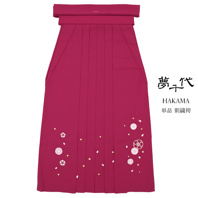 袴 小学生 単品 刺繍 小学生 ブランド 夢千代 赤紫 レッドパープル 桜 花 はかま 十三詣り 卒業式 11歳 12歳 13歳 女の子 ジュニア 仕立て上がり