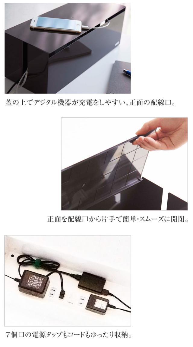 ケーブルタップ周りをボックスの中に収納することで、ホコリがたまりにくく電源火災の予防にもなります。