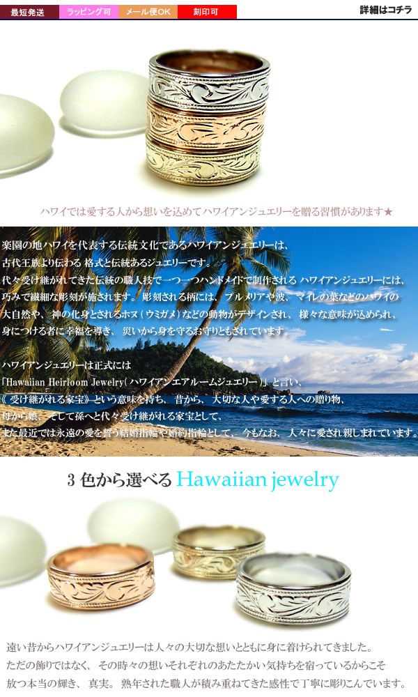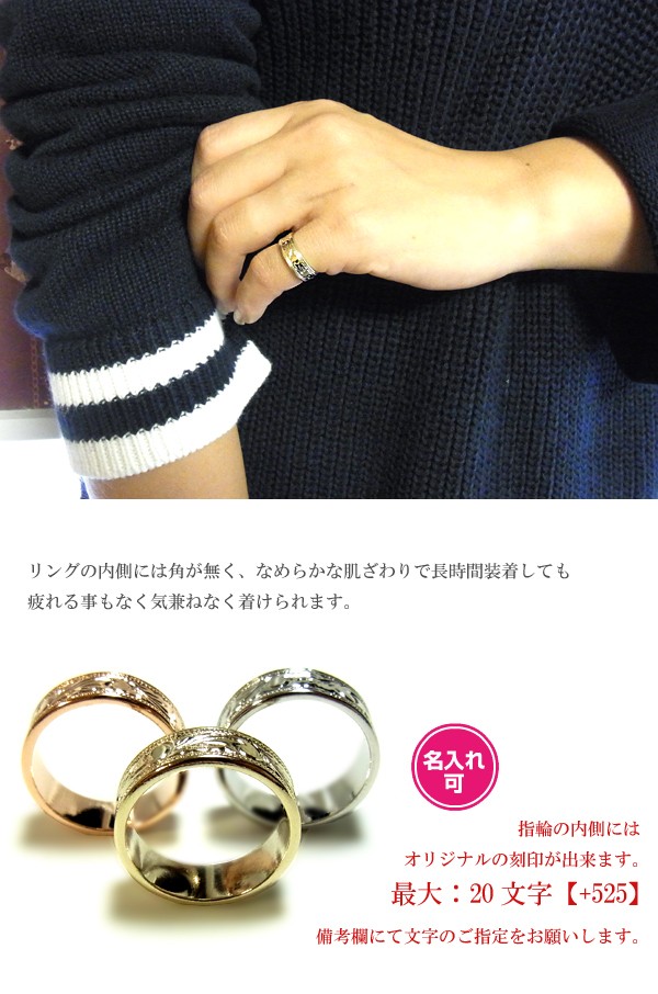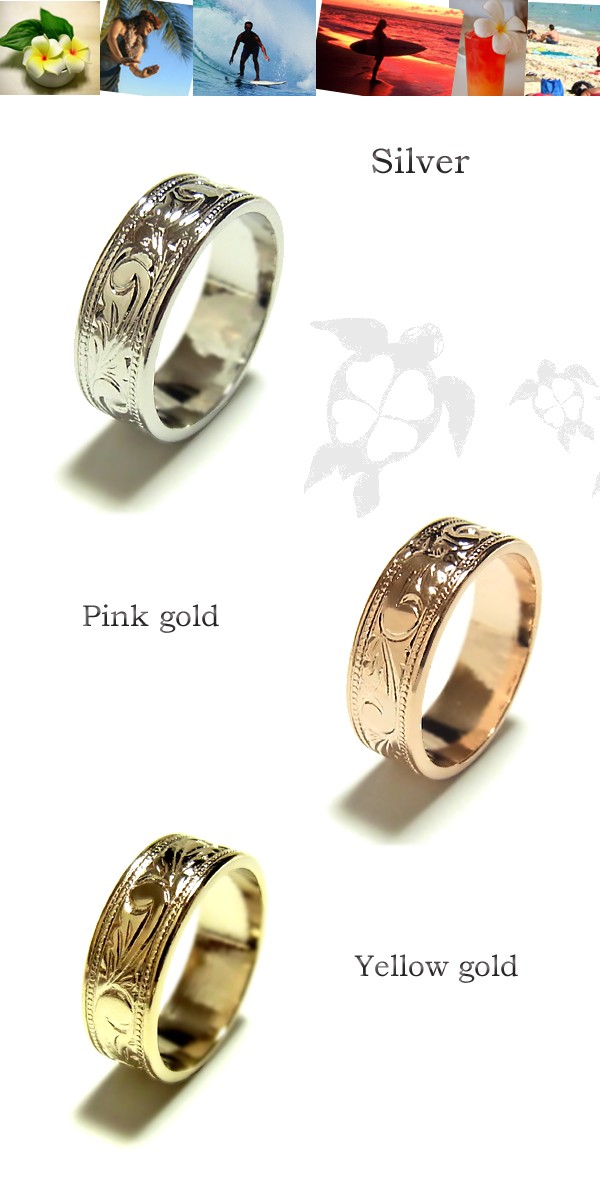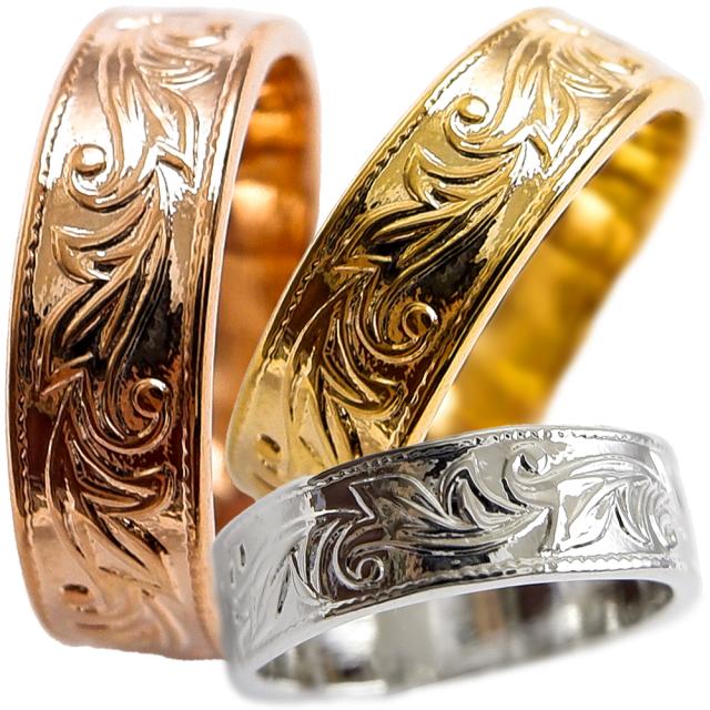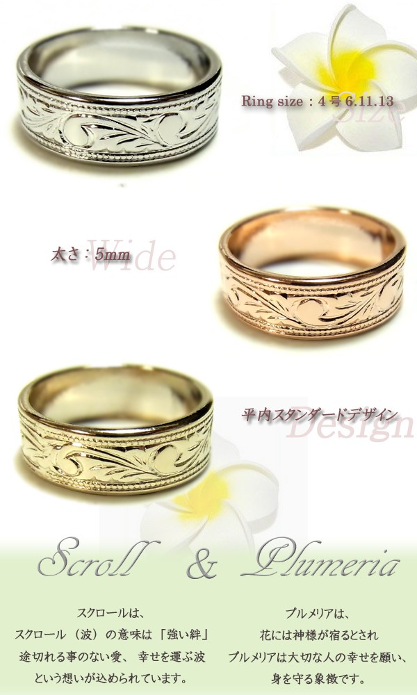 送料無料 刻印可能 ハワイアンジュエリー リング 指輪 ゴールド ピンクゴールド メンズ レディース 幅5mm平内 最安値 ラッピング対応 アレルギー対応 ペアリング セットにも