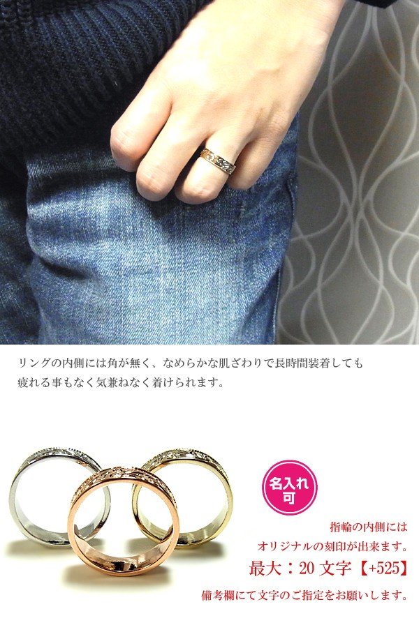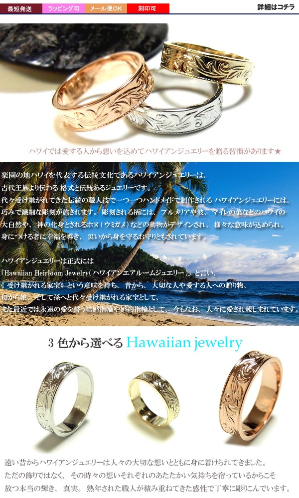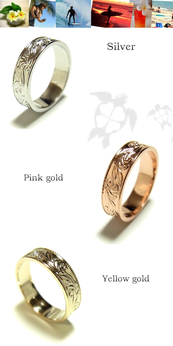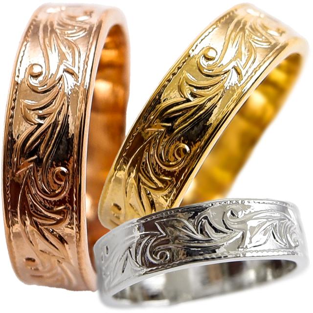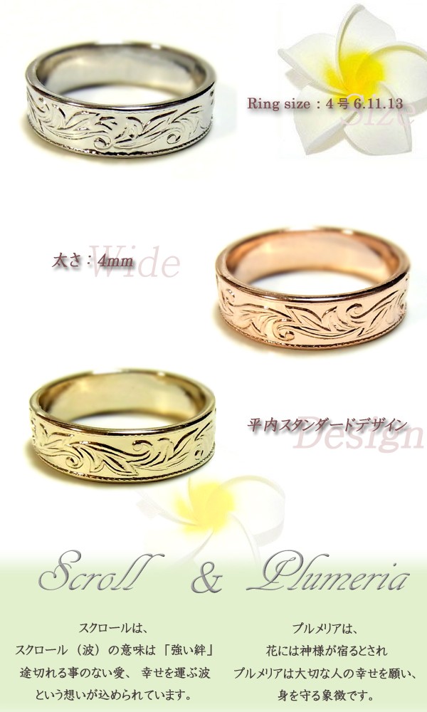 送料無料 刻印可能 ハワイアンジュエリー リング 指輪 ゴールド ピンクゴールド メンズ レディース 幅4mm平内 最安値 ラッピング対応 アレルギー対応 ペアリング セットにも