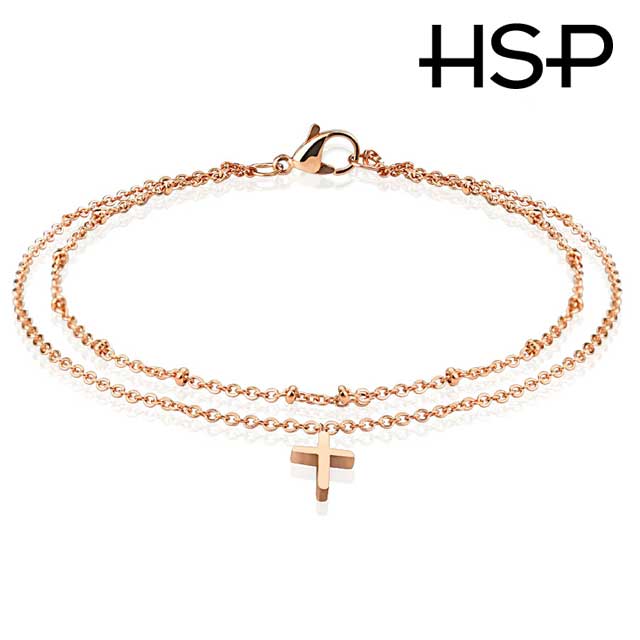 316Lステンレス ピンクゴールド クロスチャーム アンクレット