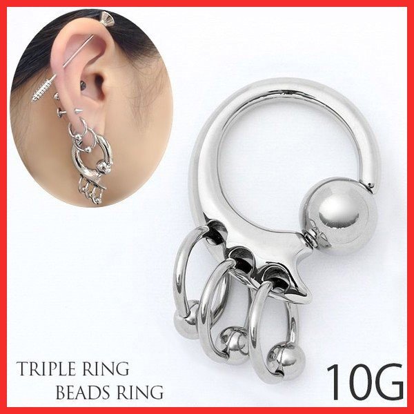 ボディピアス 10G ビーズリング トリプル シルバー ボディーピアス サージカルステンレス 金属 アレルギー 対応 スタイリッシュ メンズ
