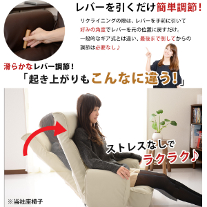 - 見た目の高級感もあり、1人がけソファーの様な座り心地です。 内側にあるレバーも楽で、微妙な角度にセット出来る無段階は本当に良いですね〜初めて使ってみて実感しました。 ただ、背もたれが...