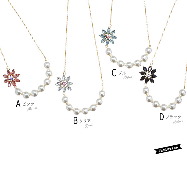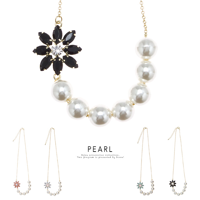 【フラワーモチーフのパールネックレス】ショート/花/ビジュー/パーティー/結婚式/首飾り/アクセサリー