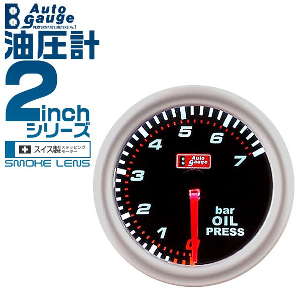 オートゲージ 油圧計 スイス製ステッピングモーター 50.8mm 2インチ 追加メーター 後付け 車 Autogauge スモークレンズ ホワイトLEDバックライト