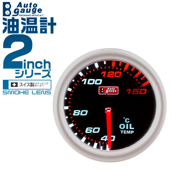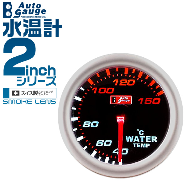 オートゲージ 水温計 スイス製ステッピングモーター 50.8mm 2インチ 追加メーター 後付け 車 メーター Autogauge スモークレンズ ホワイト LED バックライト