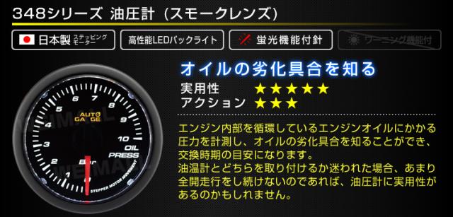油圧計 オートゲージ 車 メーター 52mm 52Φ クリアレンズ 追加メーター 後付け Autogauge 日本製モーター 348シリーズ 送料無料