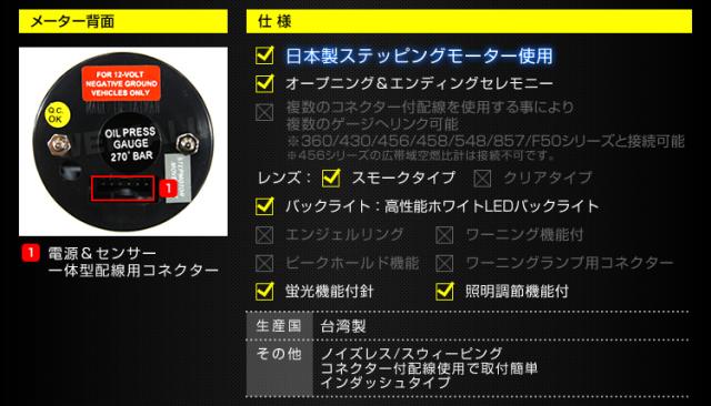 | 内容 | ・英語版取扱説明書 ・電源コード&センサーコードの一体型配線 ・センサー ・U字ブラケット ・メーターフード |