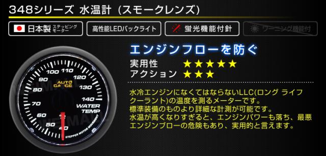 水温計 オートゲージ 52mm 52Φ 車 メーター クリアレンズ 精度誤差約±1%の正確な追加メーター 後付け Autogauge 日本製モーター 348シリーズ カー用品 送料無料