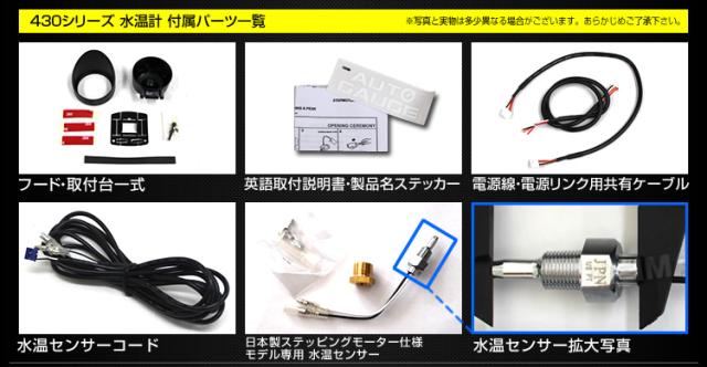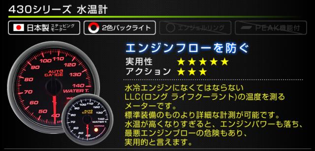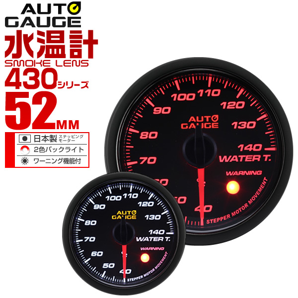 水温計 ートゲージ 52mm 52Φ 車 メーター スモークレンズ 追加メーター 後付け Autogauge 日本製モーター 2色バックライト ワーニング機能 430シリーズ 送料無料