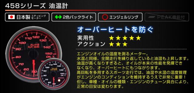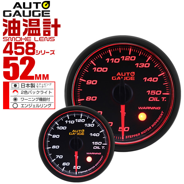 油温計 オートゲージ 車 52mm 52Φ 精度誤差約±1%! メーター スモークレンズ 追加メーター 後付け Autogauge 日本製モーター エンジェルリング 2色バックライト ワーニング機能 458シリーズ 送料無料