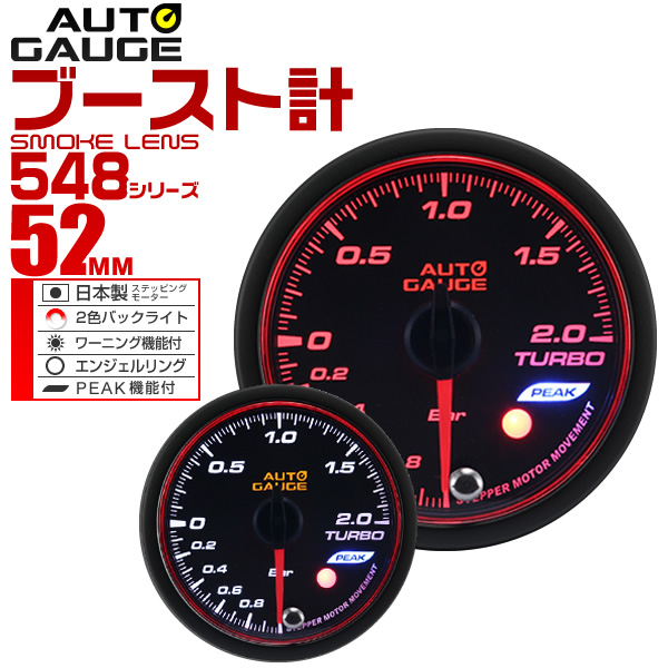 ブースト計 52Φ 52mm オートゲージ 日本製モーター 車 メーター 548シリーズ 精度誤差約±1%の正確な追加メーター Autogauge 追加 後付け モーター エンジェルリング スモークレンズ 送料無料 WEIMALL