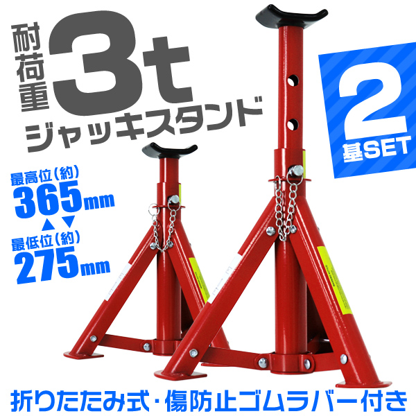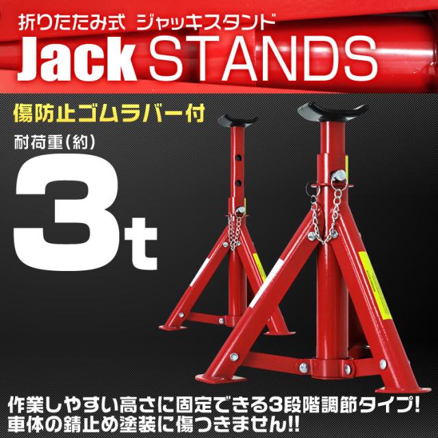 \累計100万台突破/ 【2基セット】 ジャッキスタンド 3t 馬ジャッキ リジットラック 折りたたみ式 傷防止ゴムラバー カージャッキ 車用ジャッキ