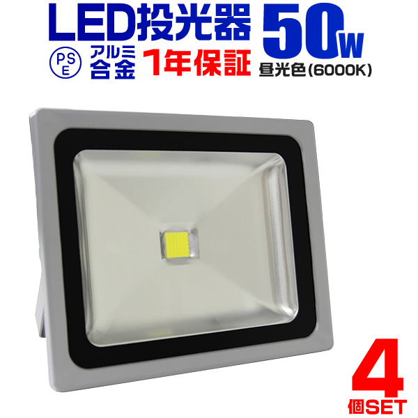LED 投光器 4個セット 50W 500W相当 1年保証 LED投光器 昼光色 6000K 広角120度 防水加工 3mコード付き ledライト 照明 ライト 看板灯 集魚灯 作業灯 駐車場灯 ナイター 屋台 工場 倉庫 屋内 照明 船舶 屋外 人気 送料無料